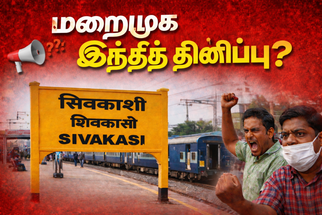 சென்னை பூங்கா ரயில் நிலையத்தைத் தொடர்ந்து, தற்போது சிவகாசியிலும் இந்தியை முதன்மைப்படுத்தி பெயர் பலகை வைக்கப்பட்டுள்ளது.