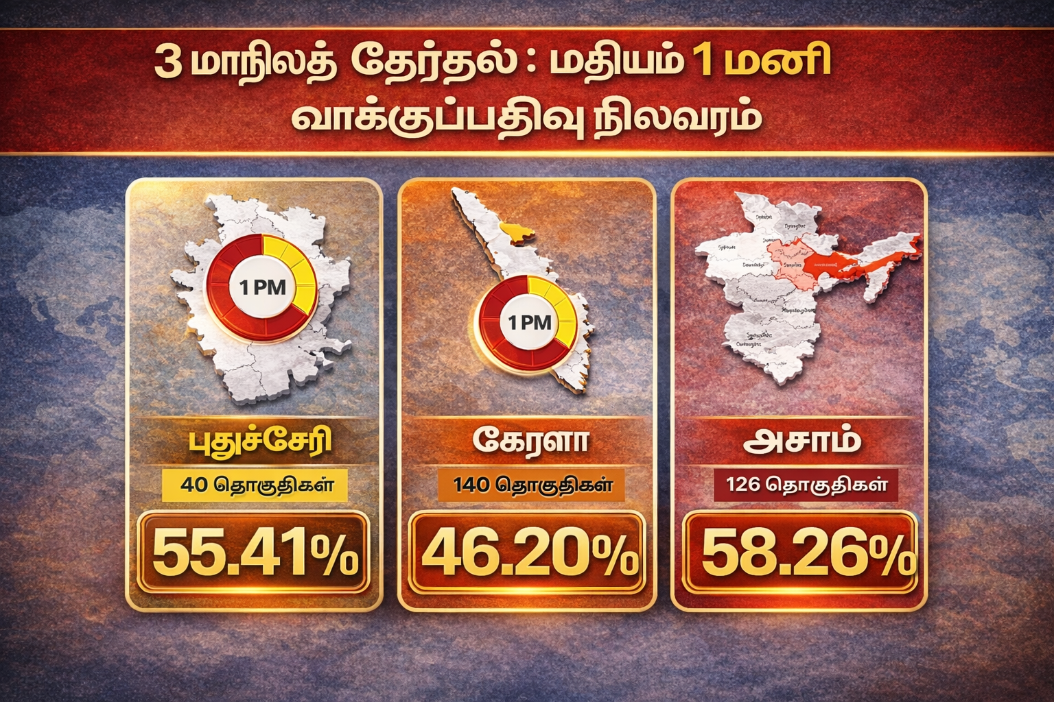 3 மாநிலத் தேர்தல்: மதியம் 1 மணி வாக்குப்பதிவு நிலவரம்